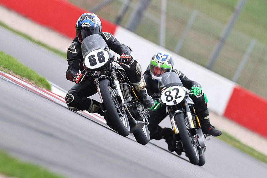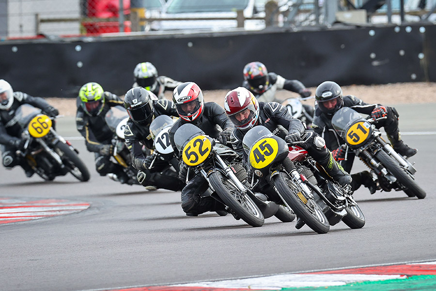 In second after a trademark strong race was Glen English, a top class rider who also praised Mark Taylor for his pace ahead of third overall and first clubman Mr Jake Dettloff who had Max Symonds and myself breathing down his neck, with Robin Stokes and Seb Perez filling the next two Clubman podiums. Flying round on his pre-war Norton CS1 was Ian Bain, an incredible bike and rider surprising many on his girder fork wonder bike. Richard Ellis and Sam Rhodes were having a great weekend sorting out machine gremlins, NOT ! but as frustration turned to fun they both put in strong performances in the end. The 350’s Dominant force was Young Seb Perez, bravo ! Seb pushed on for another win leaving Mark Harrington to scrap with Ken Perch a manageable gap behind. Richard Hann put together another great ride to take the pre-55 win from Harry Cole and Jack Hebb.