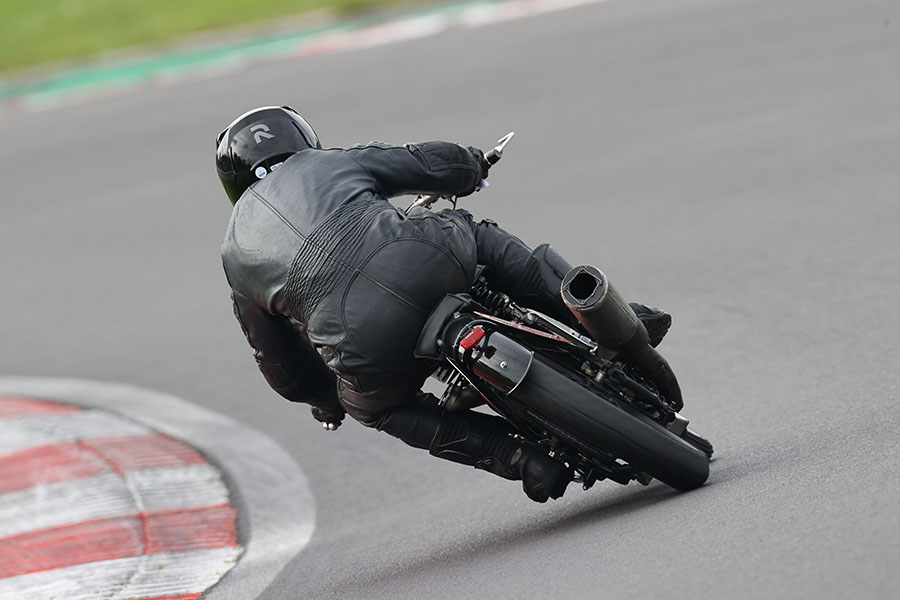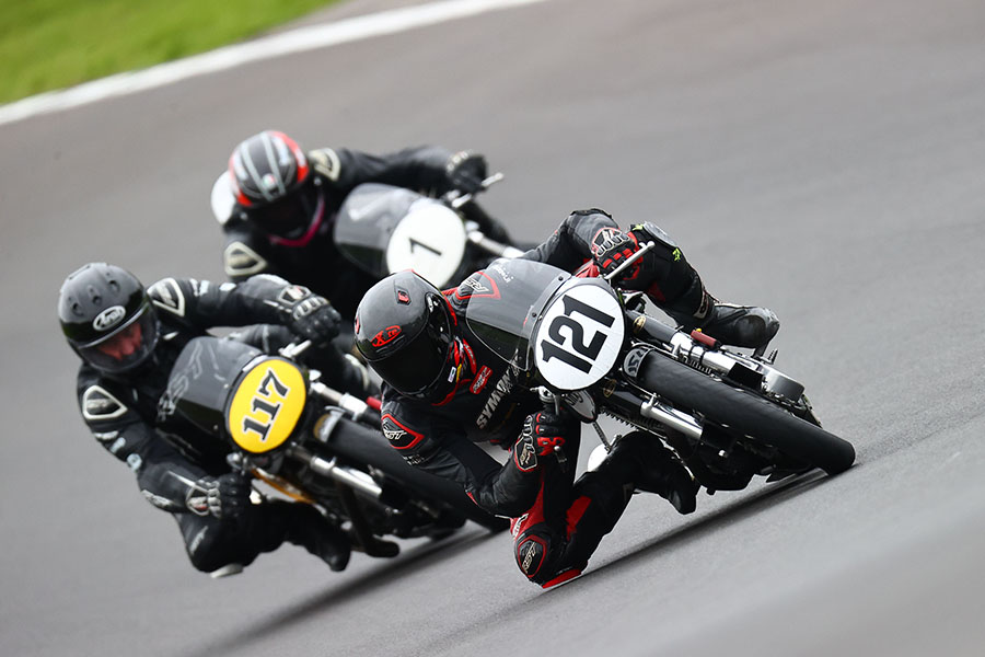 As Mark Taylor sat on the start line thinking of what shade of green to paint his nails to match his riding kit, Perky snatched the hole shot with Dan and Jake in close pursuit as Mark tagged on behind. It took a lap for Mark to despatch Jake and Dan before he was on Perky’s wheel. Following for another lap, a mistake from Perky found him floundering whilst negotiating a bunny hop over the rumble strip onto the raised asphalt after checking out the very limits of the track? Mark took full advantage up the inside throwing Perky a beaming smile and a flick of the thumb, that was pure filth from the Cockney Corker but very funny! As Dan protected his line into the glorious Paddock Hill bend the smallest gap allowed Perky to just get on the throttle a smidge before him, they both slingshot down to the compression with us both having the rear tyres squirm. Holding the same gear, throttle cables taut, we approach Druids hairpin with just enough to make a clean dive for the inside line Perky railed the bend with Dan having to take the longer offside line. Exiting up Perky’s chuff, Dan found the inside line into the next left but closed off and knowing it was Perky’s bogie bend it was a chance gone. Then with a little help from a back marker Perky was able to stay in front to the flag taking second to the incredible Mark Taylor. Jake Dettloff continued to improve and as such has secured the Clubman Championship and is in great shape for his move to the Championship class next year. Very fast lad. Sam Rhodes had a right battle overhauling Sam Bennett, Bennett just ahead for half the race before Rhodes pulled past and opened a gap with Bennett able to stay ahead of the titanic mid pack battle between Hocking, Williams and Tonge – all three finishing in that order only 0.7 between them! Cole and Dawson just behind once again entertained the crowd with Dawson just staying ahead. Tony Jimenez had a good ride and enjoyed his duelling with Steve Higgins before Steve DNF’d leaving Seb Perez Jnr on his 350 beating up Ken Perch, Mick Baldwin and our super German friend Torsten Busch.