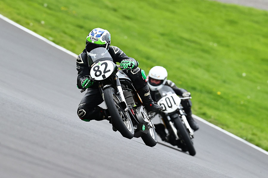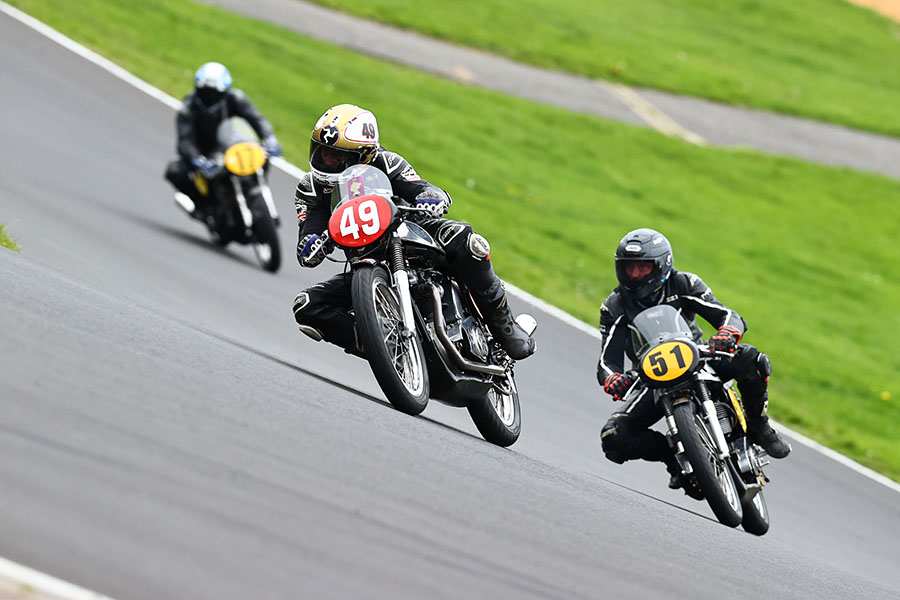 A great start launch off the line by most riders but that butt clenching first drop into Paddock bend had Taylor takes the holeshot with Higlett out the trap like a whippet from P5 – right on Taylors chuff with Perky, Dan and Jake equally close. In fact most the grid were equally close but clean through this notorious first bend. Sam Bennett on his Norton Inter was well impressive against the later Manx’s and G50’s with his pre-war bike kicking ass much to his amusement along with another Sam, Mr Rhodes on his Domi using 100% of its capability, really talented riders the pair of them. Richard Hann had a super start but soon succumbed to double ’Sam’ pressure as both forged past, as did Simon Hocking chasing 500 clubman points and even though Alex Williams was flying, Simon held fast to the flag. As Taylor romped away at the front, Higlett tried to match his pace only for his Tony Dunnell Manx to unusually loose sparks and DNF. Meanwhile Stuart Tonge piled on the coals but struggled to get past a determined Hann as Richard Dawson had a shadow in the form of Harry Cole most of the race with the pair finishing as one, Richard just holding on to eleventh. Maria Costello was very welcome on a Molnar Manx, smooth as ever she really enjoyed riding a proper bike! Our top 350 pilot Seb Perez Jnr once again put in a great performance to take top honours as Ken Perch held off the attentions of semi-smiling Mick Baldwin and the always smiling Torsten Busch.