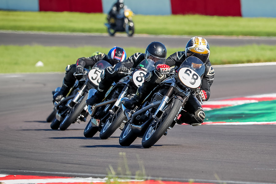 With the warm up lap completed the riders take their place on the grid, a furled flag pointed at the lights signal the final preparation to race. The red lights stay illuminated for longer than usual tempting the riders to launch, catching out the keen, landing them a 10 second penalty for jumped start? High rev’s and fried clutches have the bikes leap from the line with the best of em, or the jump starters arriving at Redgate’s awkward right hander first, a tight entry not allowing a full stretch of the throttle cable and so with a mix of track positions the crucial exit from the first corner feeds riders side by side into Hollywood’s downhill double apex before the muscle pounding right to left Craner curves with it’s compressing downhill exit keeping tendons taught and busy as brakes, gear changing and track positioning are so necessary to keep up momentum going through the off cambered Old Hairpin, then engaging flat chat mode you stamp through the gears, linking the left uphill apexes before hitting the brakes at Schwantz Curve ready for McLean’s naughty right, slightly wide you run out of track, hit the apex and you think you could have gone twice the speed ! Then all thought’s turn to the blind entry to Coppice, so important to exit fast and carry speed onto the back straight as not to get drafted and passed before hauling the anchors on for Roberts chicane, such a popular overtaking spot as it messes up the ability to drive for the finish line if pushed out of position, if not it’s victory and immortality? Well maybe not immortality but certainly a pat on the back and a wonderful trophy!